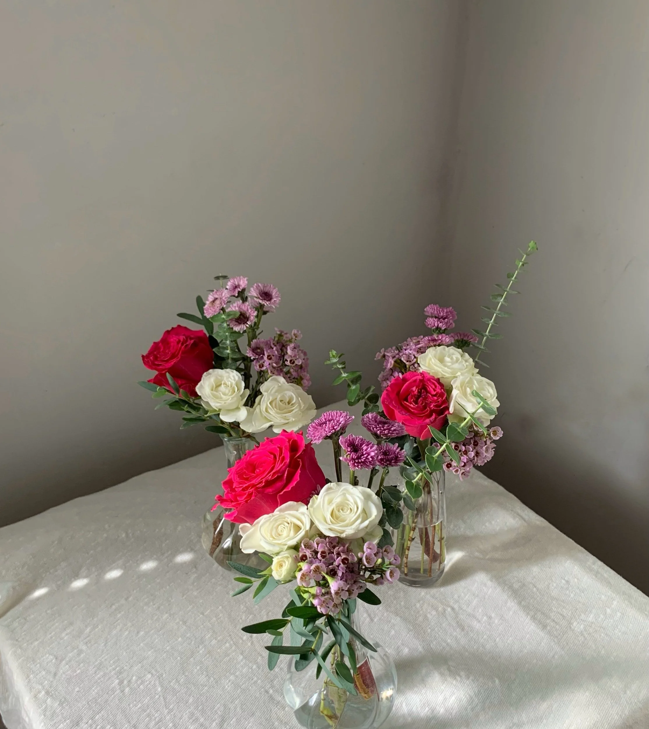 Simple, fresh arrangements designed for everyday spaces. Perfect for coffee tables, bistro settings, work desks, or bedside tables. Seasonal blooms sized just right to bring charm without crowding the space